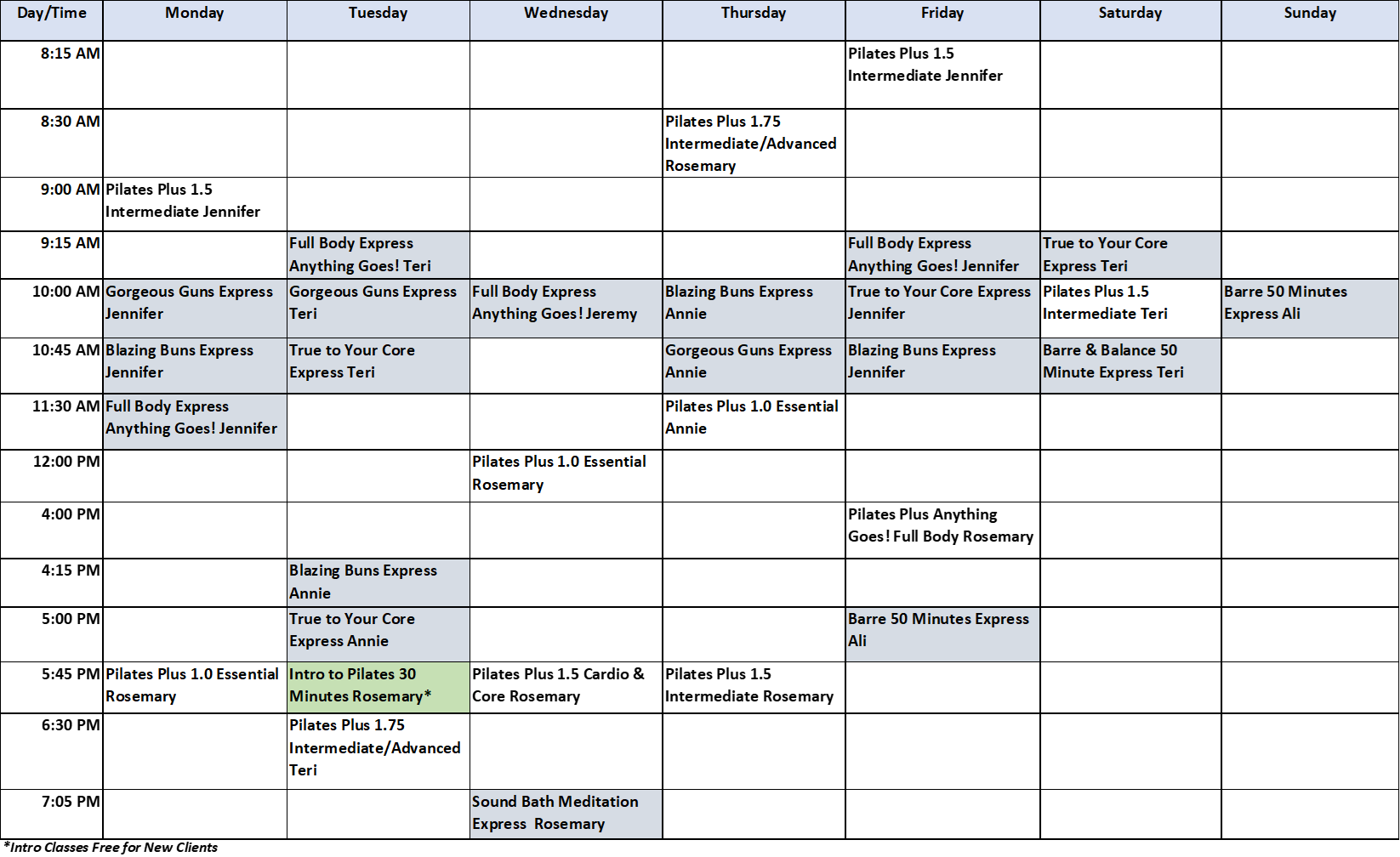 March 2026 Group Class Schedule Starts March 9th